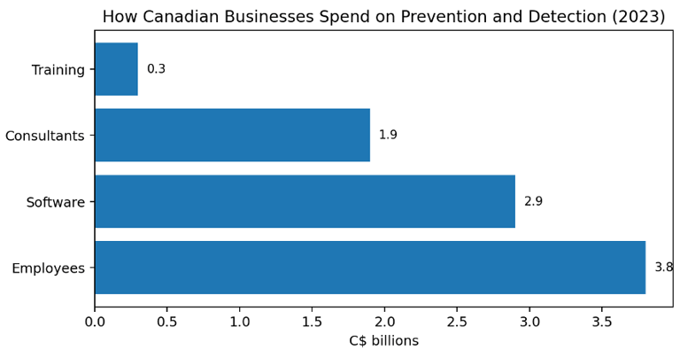 En réalité, la répartition officielle des dépenses canadiennes soutient une vision plus large du budget. Statistique Canada a constaté que la catégorie la plus importante des coûts de prévention et de détection en 2023 était celle des salaires des employés liés à la sécurité, suivie par les logiciels de cybersécurité et les dépenses liées aux consultants ou aux sous-traitants ; la formation des employés représentait une part plus faible, mais restait significative. La leçon est simple : la cybersécurité n’est pas une gamme de produits. C’est un mélange de personnes, de logiciels, d’expertise externalisée et de discipline opérationnelle[2].